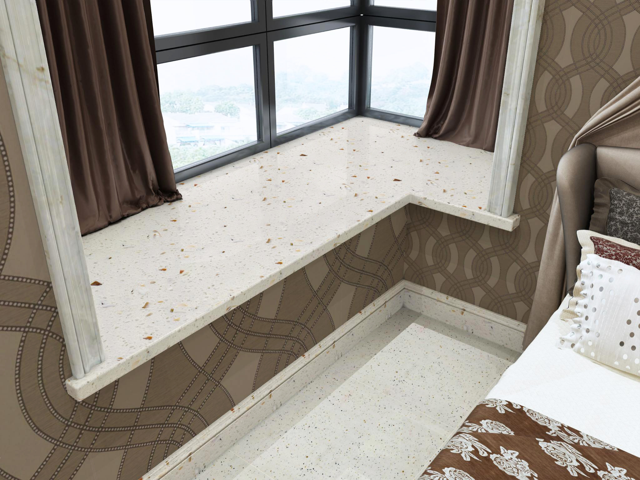 多年來,日木始終秉承“精工品質,匠心鑄造”的理念,專業為廣大消費者提供花色豐富、健康環保、實用美觀的產品。自主研發的石英石由高純石英石晶體及輔料通過專業加工技術在真空條件下制造而成,彎曲強度高達8000PSI,高壓成型密實度高,防滲透、零吸水率;食品級環保健康,純天然環保材質,可直接接觸食物,是一款新型環保高性能板材,可加工各類臺面板、家具板、規格板、工程板等墻地臺面材料,被廣泛用于星級酒店、高端別墅住宅裝修、機場、高鐵、辦公樓等墻面、地面裝飾,深受市場青睞。